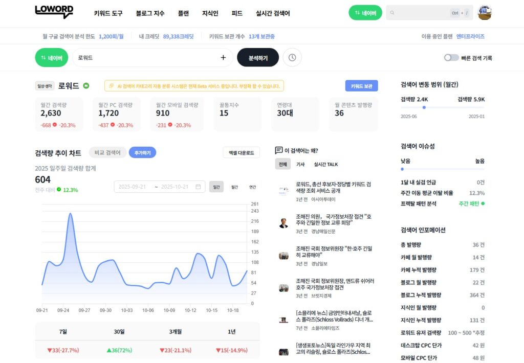 모두들 사용하는 네이버나 구글 등 다양한 검색엔진. 의미를 알고 써야 하는 걸 알고 계시나요? 로워드는 키워드 빅데이터 플랫폼 로워드는 검색엔진의 검색어를 분석하여 다양한 분석 자료를 시각화하여 전달합니다.